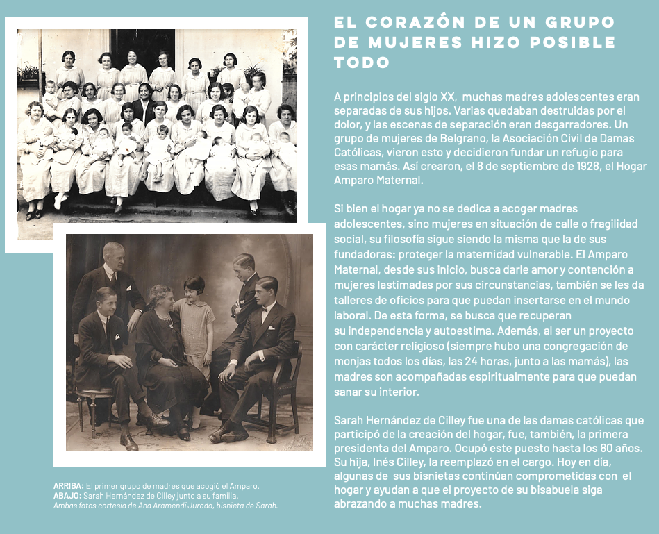 Ubicado en Ernesto Bavio 2816, Nuñez, al lado de la Universidad Torcuato Di Tella y a escasas cuadras de la cancha de River, el Hogar Amparo Maternal es el refugio de 21 mamás con sus hijos, en total son 42 chicos. Esta asociación civil está a cargo de la congregación de las Hermanas San José, ellas viven y acompañan a las mamás. Además, una asistente social y una psicóloga, que están en el hogar 4 horas diarias, le dan contención a los 63 beneficiarios de la organización. “Cuando el equipo está acá, no para un segundo”, cuenta Dolores Repetto, quien trabaja part-time como desarrolladora de recursos.